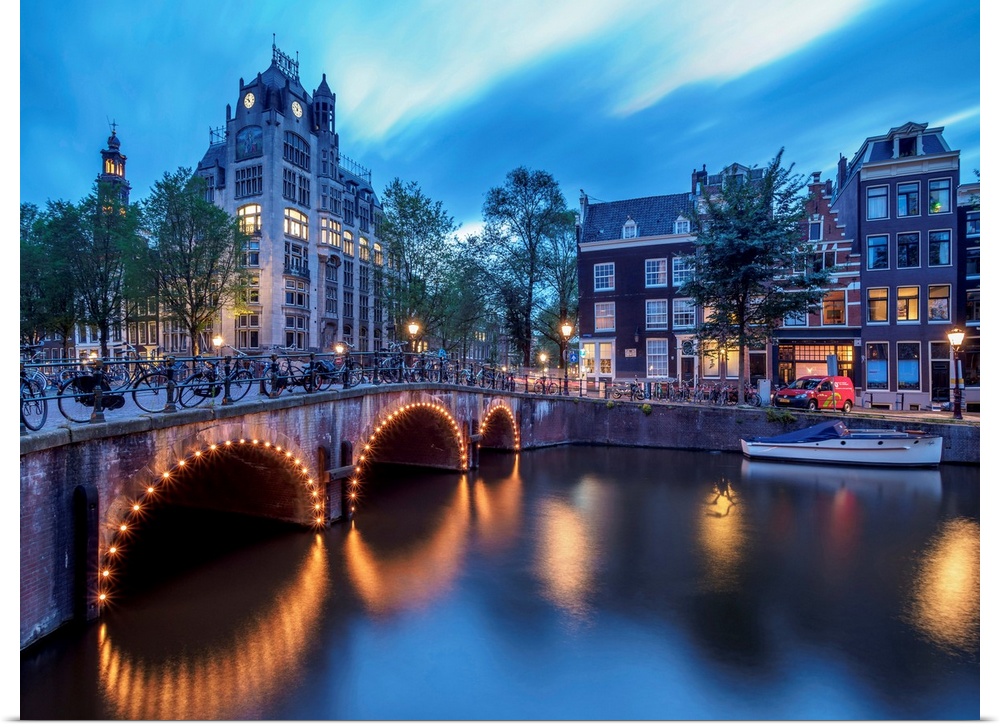 <p>Leliegracht Bridge Over Keizersgracht Canal At Dusk, Amsterdam, North Holland, The Netherlands</p>