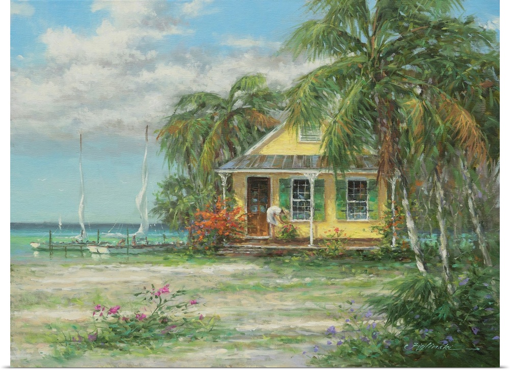Architecture Cottages Art Coastal Contemporary Art Martin Figlinski Landscapes Beaches Seascapes Trees Palm Painting
