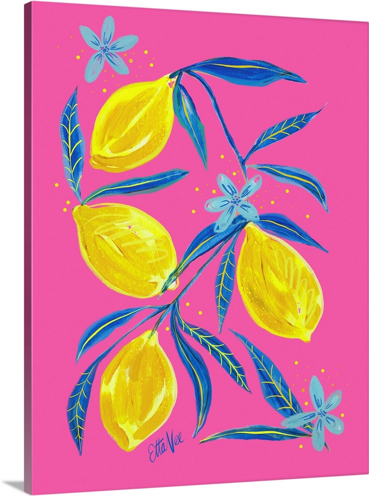Art EttaVee Art Decorative Art Food and Drink Food Fruit Lemons and Limes Painting Pink Wall Art