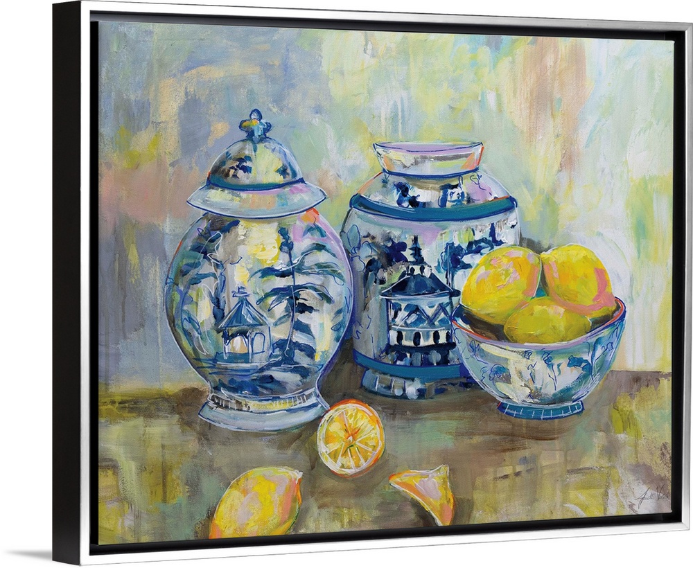 Vases and Urns Art Traditional Kitchen Wall Art Chinoiserie Contemporary Art Food Fruit Lemons and Limes Modern Chinoiserie Painting Still Life Jeanette Vertentes