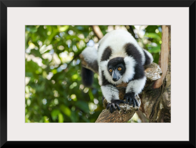 <p>Africa, Madagascar, Lake Ampitabe, Akanin'ny nofy Reserve. A black-and-white ruffed lemur is curious and watching everything.</p>