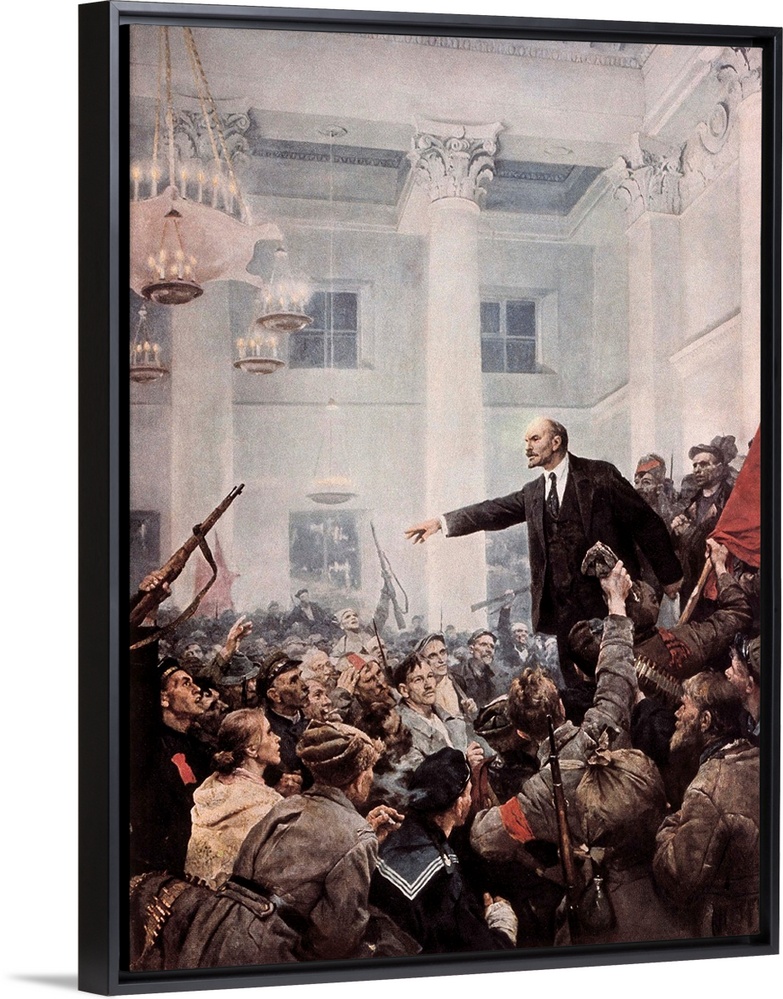 <p>LENIN, Vladimir Ilich Ulyanov (1870-1924). Russian theoretician and communist leader politician. Lenin proclaims Soviet power. Painting ca. 1947 by Vladimir Aleksandrovich Serov (1910-1968). Socialist realism. Oil on canvas. Private Collection. -</p>