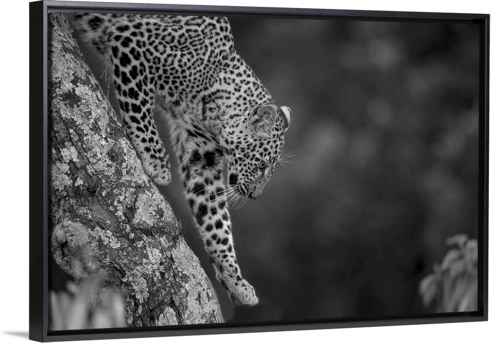 <p>Close-up of a leopard (panthera pardus) lifting its paw walking down a branch at the Kicheche bush camp, Masai mara, Kenya.</p>