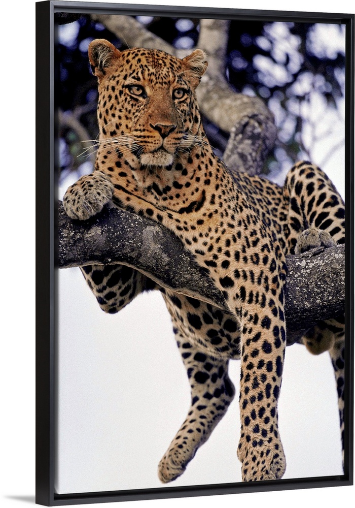 <p>A male leopard drapes himself over a tree branch in Kenya's Masai Mara National Reserve.</p>