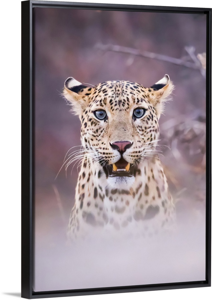 <p>Portrait of a Leopard (Panthera pardus) obscured by fog technique, Northern India; Rajasthan, India</p>