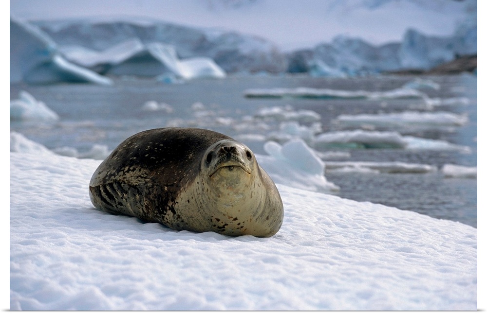 <p>Leopard seal laying on ice pack, antarctica, summer.</p>