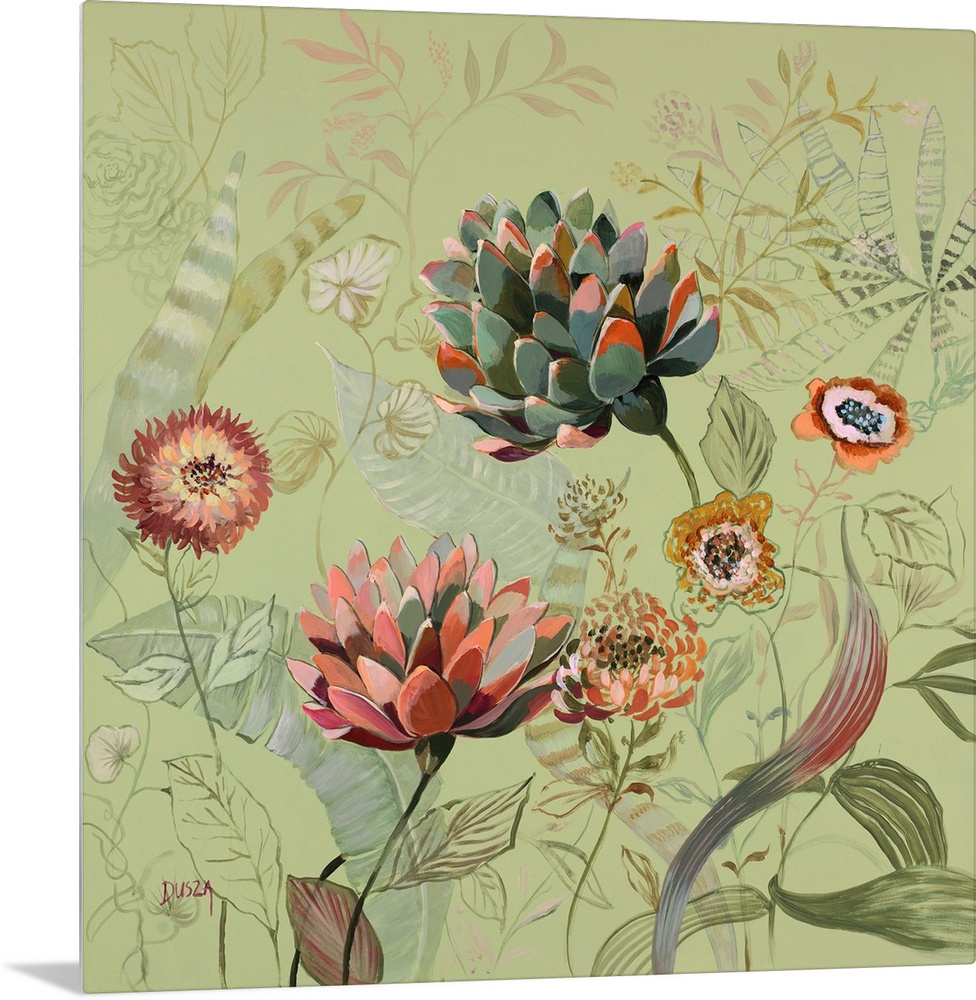 Art Bohemian Contemporary Art Florals The Bohemian Green Wall Art Painting