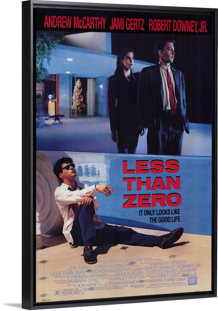 <p>An adaptation of Bret Easton Ellis' popular, controversial novel about a group of affluent, drug-abusing youth in Los Angeles. McCarthy and Gertz play friends of Downey who try to get him off his self-destructive path--to no avail. Although it tries, the film fails to inspire any sort of sympathy for this self-absorbed and hedonistic group. Mirrors the shallowness of the characters although Downey manages to rise above this somewhat. Music by the Bangles, David Lee Roth, Poison, Roy Orbison, Aerosmith and more.</p>