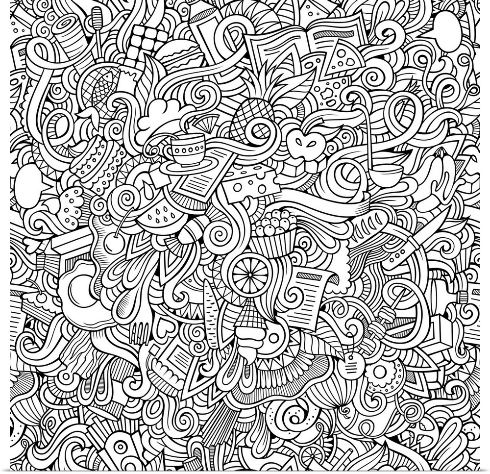 <p>An assortment of all different types of food, such as fruit, veggies, and sweets. Perfect for Coloring Canvas.</p>