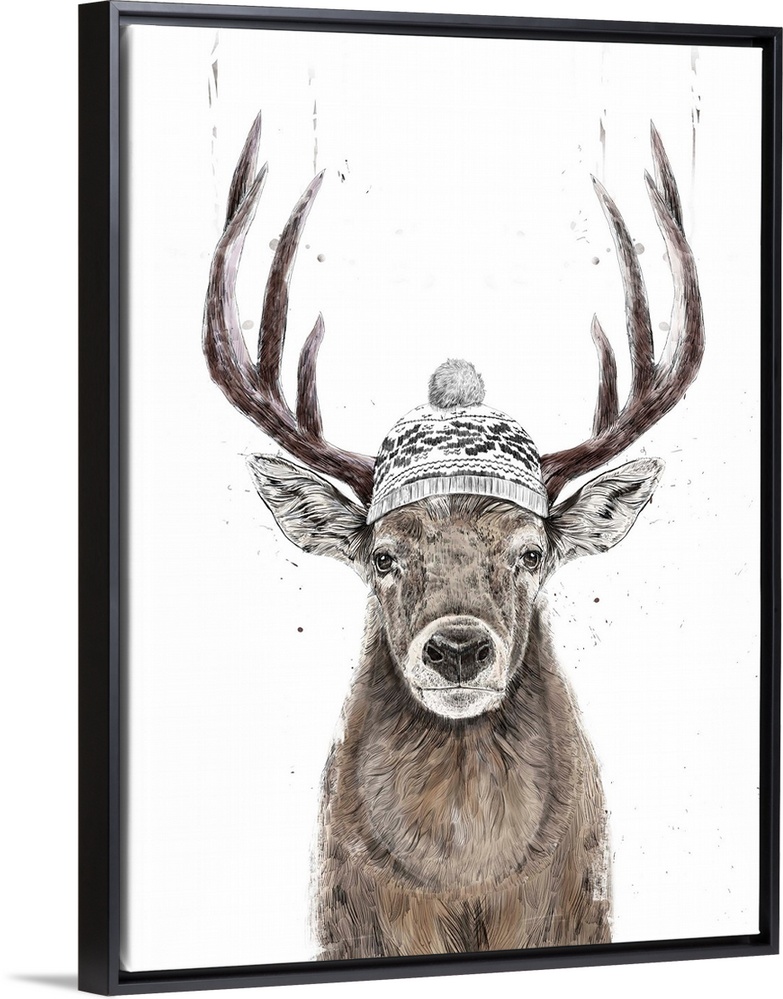 <p>Portrait of a deer ready for winter in his hat.</p>
