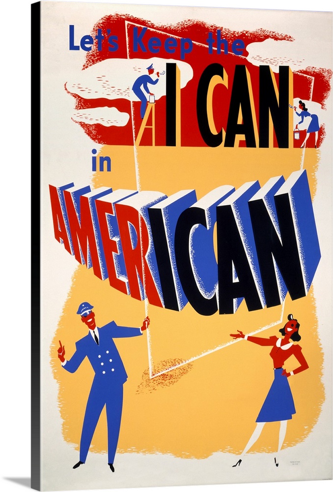 <p>This bold and upbeat WWII-era morale poster uses wordplay and striking typography to encourage American perseverance and optimism. Featuring stylized figures painting a banner, it reflects the home front's spirited support for wartime production and national unity.</p>