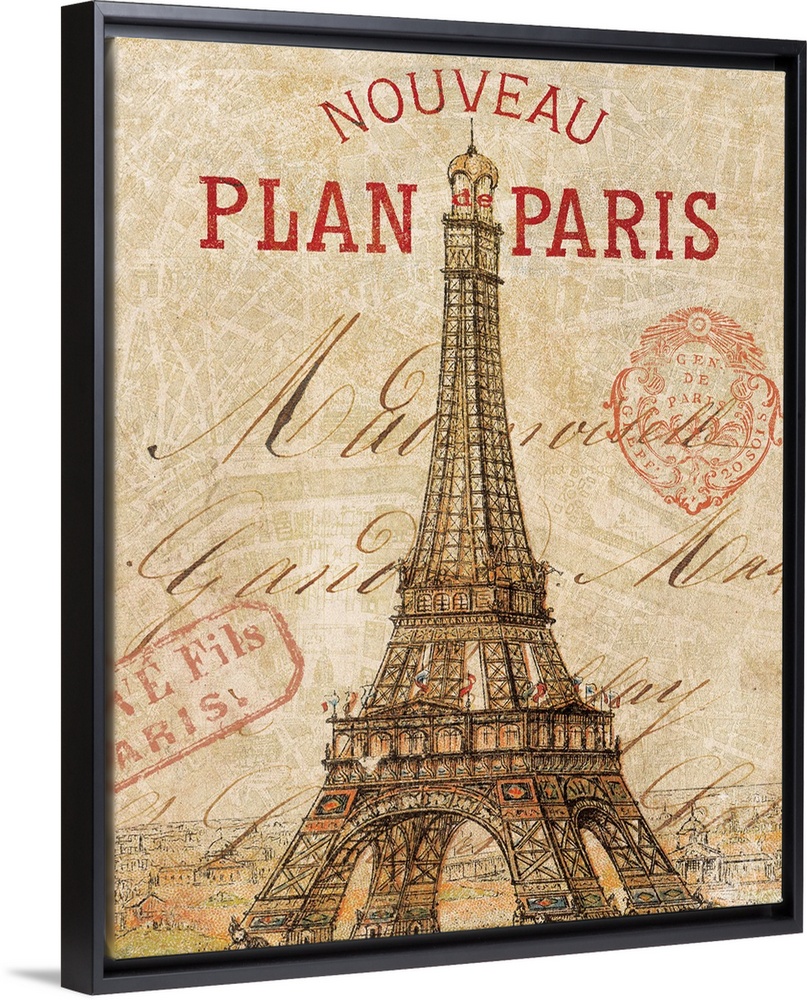 <p>Big illustration portrays a vintage postcard from France that includes the famous landmark found within its capital. Around the postcard are various lines of text in a variety of fonts.</p>