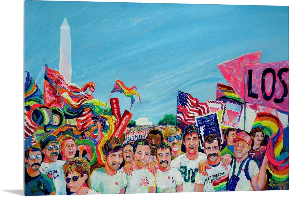 <p>LGBT March in Washington DC. Gay pride parade party and march in the US Capitol captured in painting.</p>