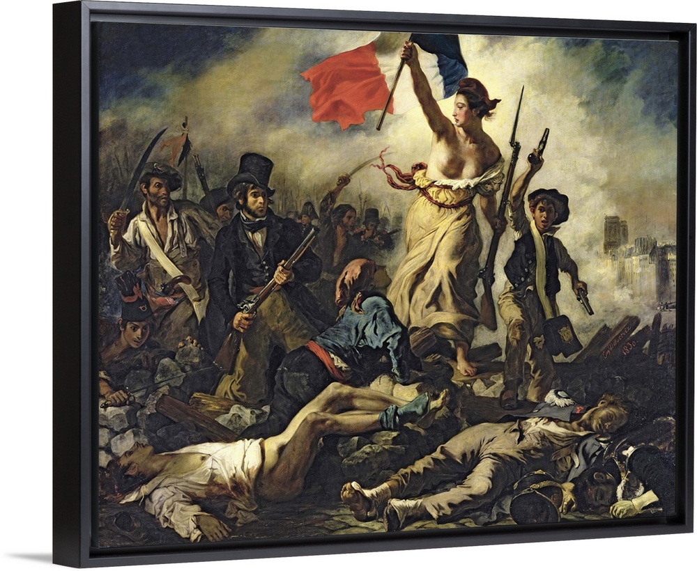 <p>XIR3692 Liberty Leading the People, 28 July 1830 (oil on canvas) (for detail see 95120) by Delacroix, Ferdinand Victor Eugene (1798-1863); 260x325 cm; Louvre, Paris, France; (add. info.: la liberte guidant le peuple, le 28 Juillet 1830); French, out of copyright</p>