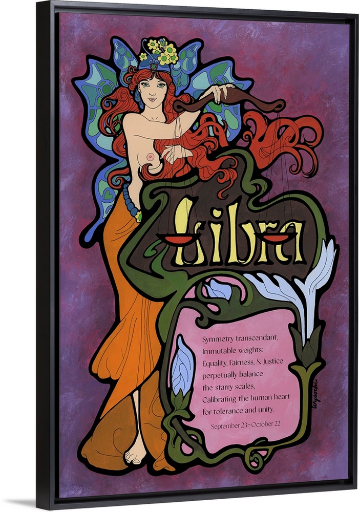 <p>Artwork and Poetry Focusing on the mythology of each sign, alluding to the astrological traits, with references to the genesis of the individual constellations and the machinations of the ancient gods. "Symmetry transcendant, Immutable weights: Equality, Fairness & Justice perpetually balance the starry scales, Calibrating the human heart for tolerance and unity." Libra, September 23 - October 22.</p>