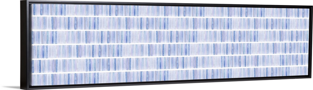<p>Large panoramic abstract watercolor painting with geometric patterns in shades of blue and purple.</p>