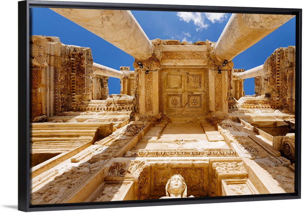 <p>Library of Celsus, Ruins of ancient Ephesus, Selcuk, Izmir Province, Turkey. Bottom to top view.</p>