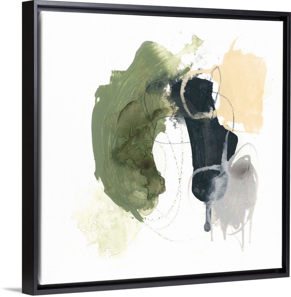 <p>Abstract artwork of sketched and painted gestures in green, black, yellow and gray.</p>