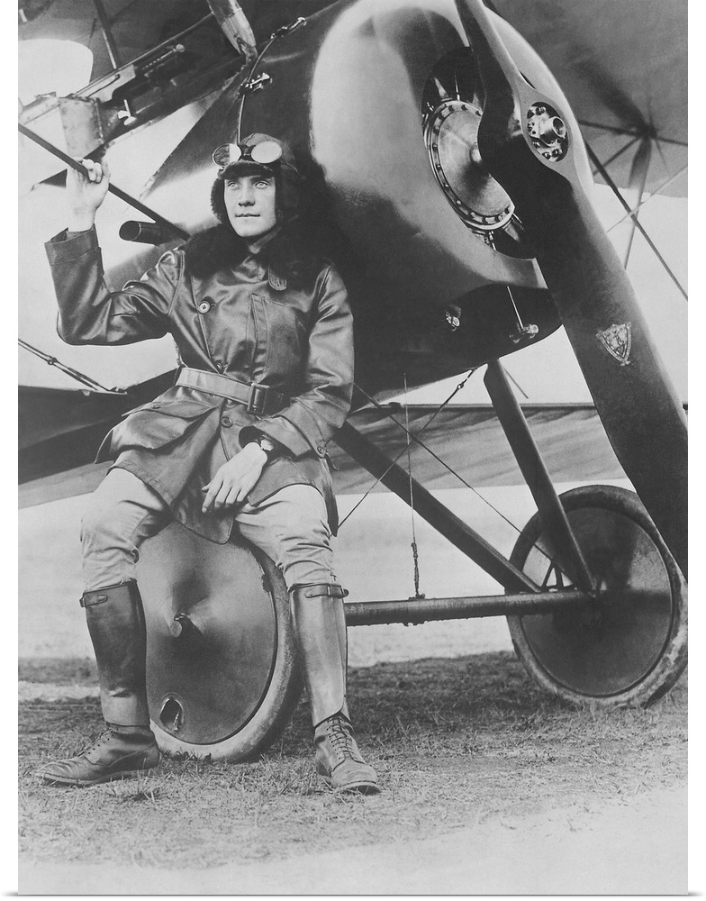 <p>Lieutenant Earl Carroll seated on the wheel of his fast scout airplane, 1918.</p>
