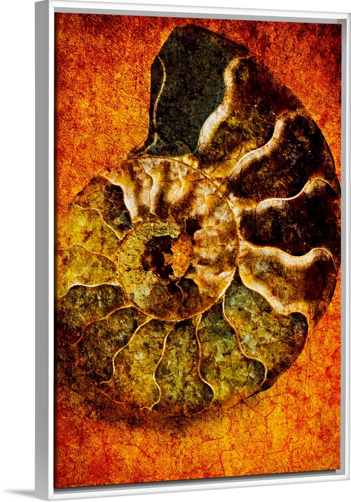 <p>This large piece is artwork of a ammonoidea fossil against a warm toned background.</p>