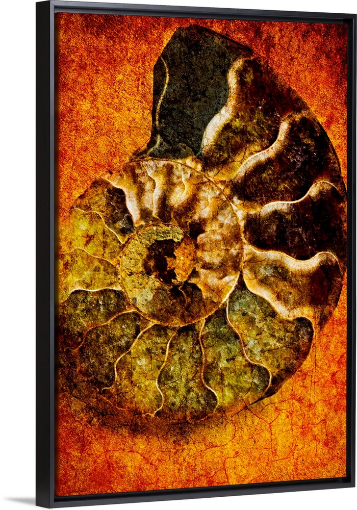 <p>This large piece is artwork of a ammonoidea fossil against a warm toned background.</p>