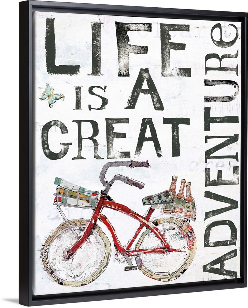 <p>"Life is a Great Adventure" with a red bicycle, created with mixed media.</p>