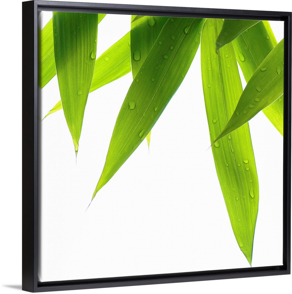 <p>Big canvas print of a close up of grass blades hanging downward on a blank background.</p>