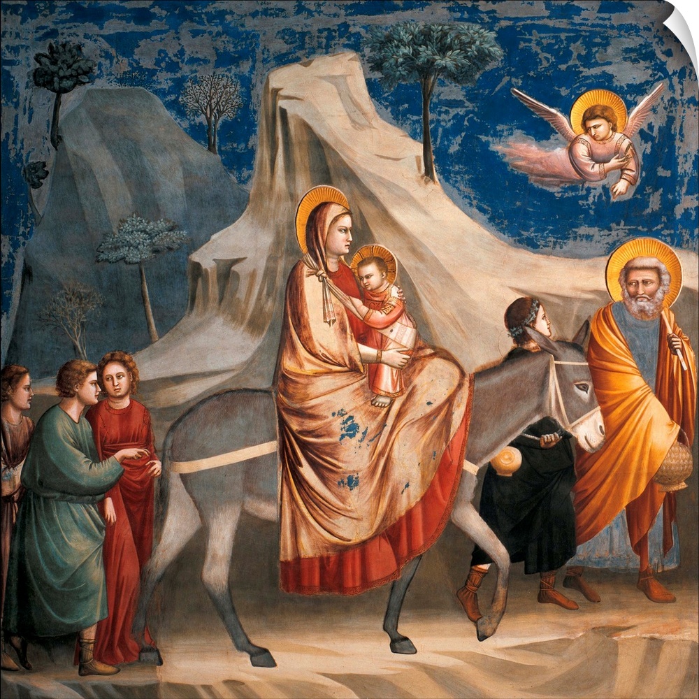<p>Stories of Christ The Flight into Egypt, by Giotto, 1304 - 1306 about, 14th Century, fresco, - Italy, Veneto, Padua, Scrovegni Chapel. All. Donkey flight Mary Madonna the Infant Jesus the Christ Child Joseph angel blue mountains gray boys. (290631) Everet</p>