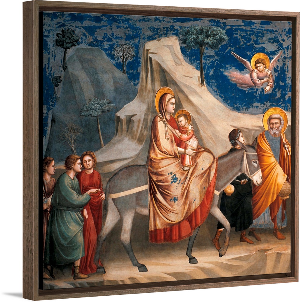 <p>Stories of Christ The Flight into Egypt, by Giotto, 1304 - 1306 about, 14th Century, fresco, - Italy, Veneto, Padua, Scrovegni Chapel. All. Donkey flight Mary Madonna the Infant Jesus the Christ Child Joseph angel blue mountains gray boys. (290631) Everet</p>