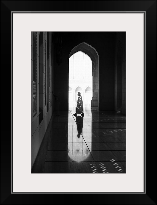 <p>A photograph of a man and architectural interior casting reflections on the floor.</p>