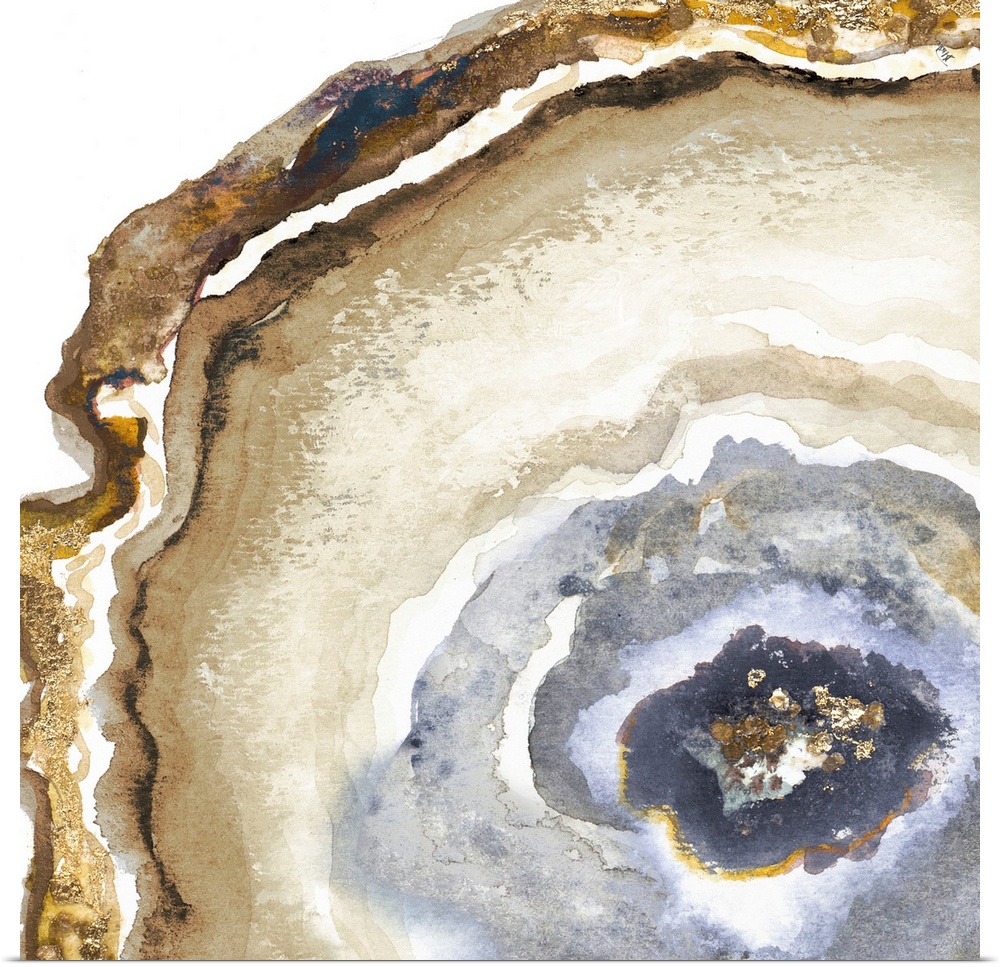<p>This contemporary artwork offers the intricacies of sliced agate completed in watercolors with gold accents.</p>