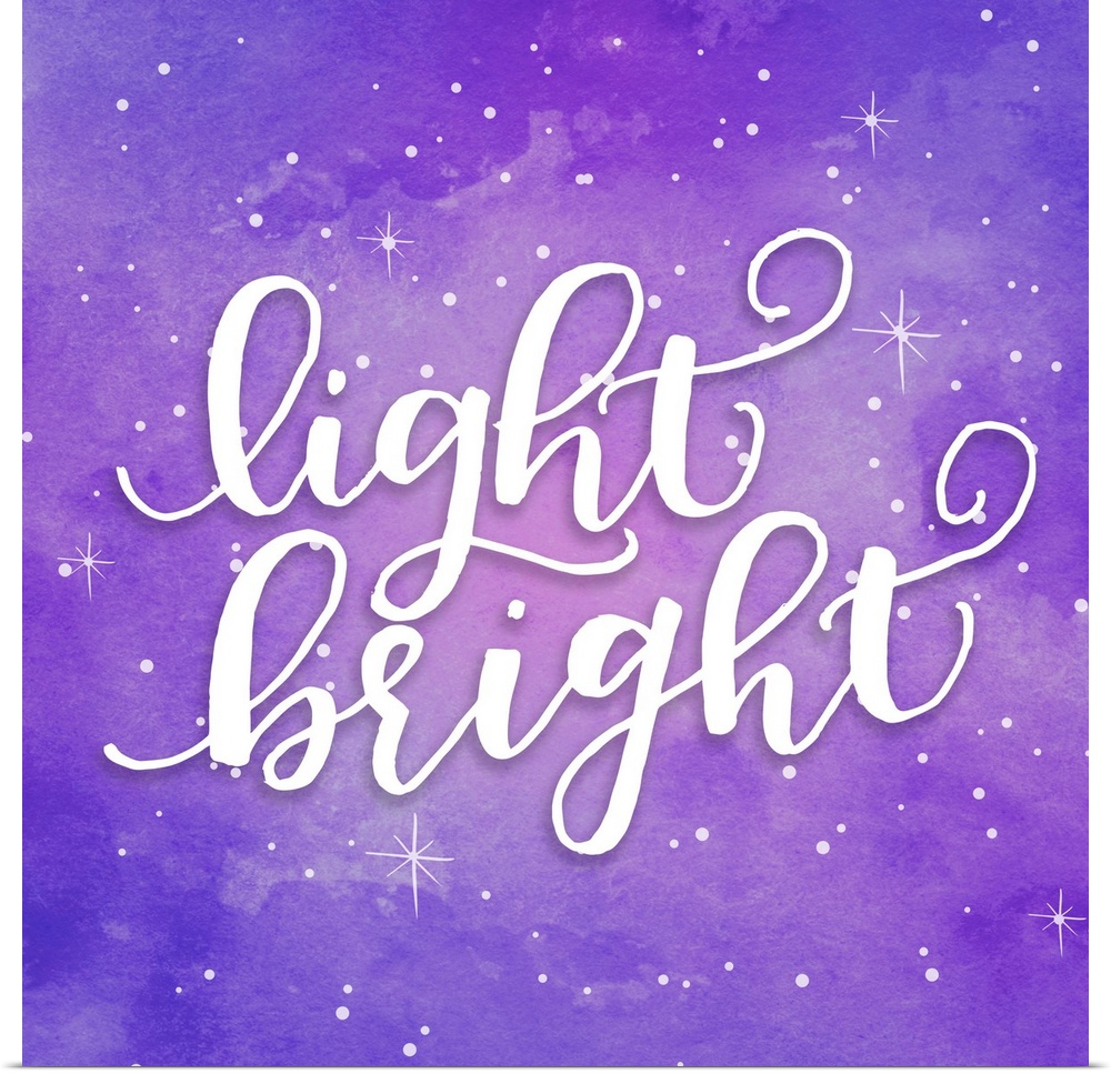 <p>Handlettered text reading "Light Bright" on a purple starry background.</p>