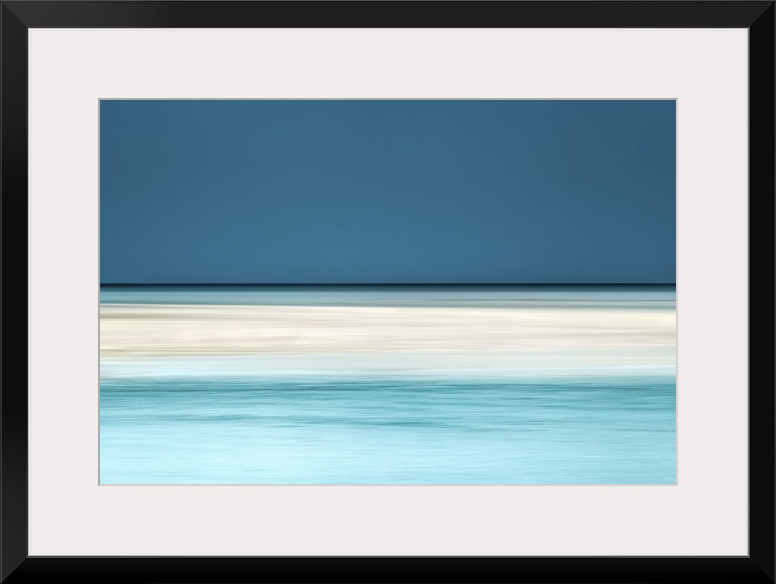 <p>Minimalist abstract of summer water around a sandbank in cream and teal.</p>