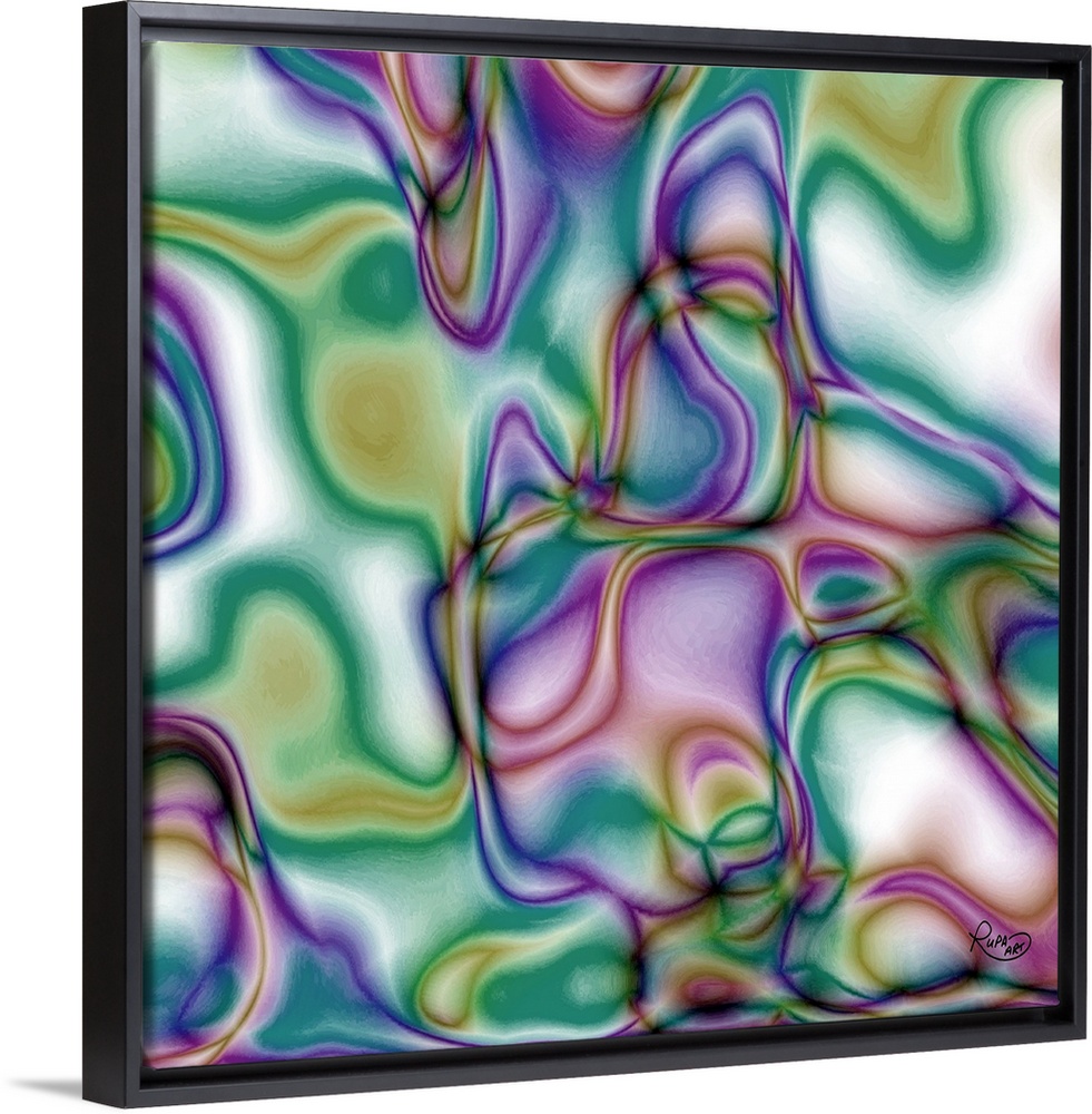 <p>Square abstract art with wavy lines of color intertwining together on a white background</p>