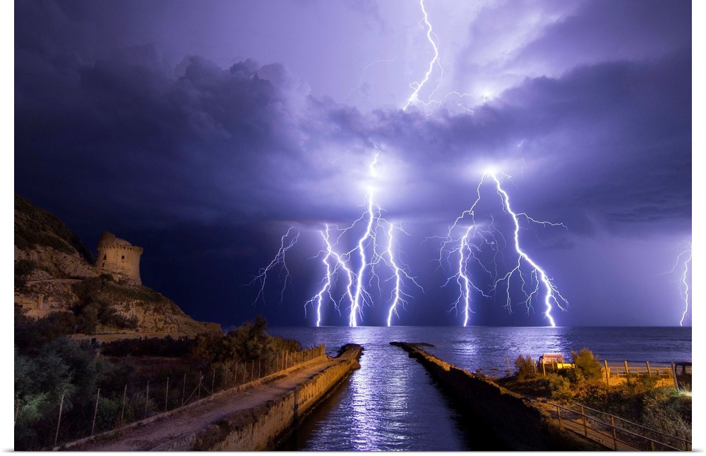 <p>Lightning storm over the ocean near Torre Paola, Italy.</p>