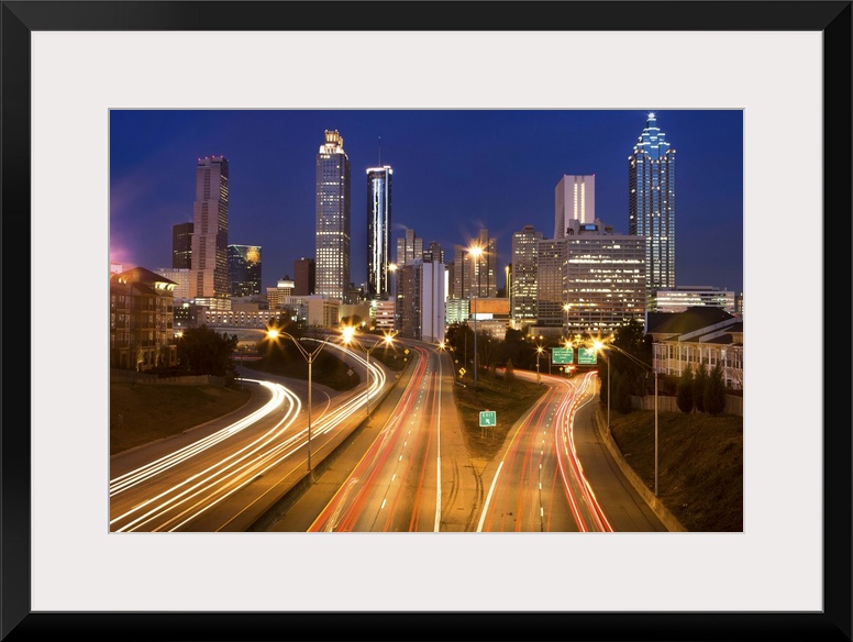 <p>Atlanta city office buildings and highway traffic motion blur</p>