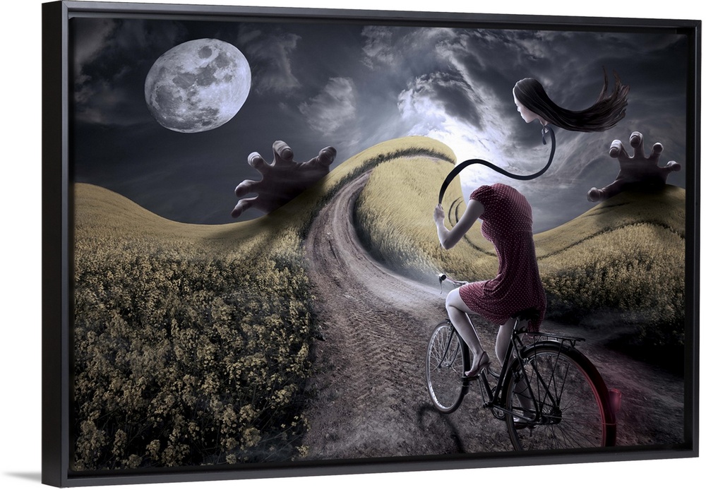 <p>Conceptual image of a woman on a bicycle in a dreamscape.</p>