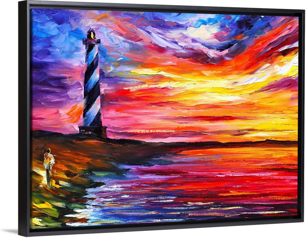 Leonid Afremov Art Impressionism Contemporary Art Rivers, Lakes, and Oceans Lighthouse Seascapes Multicolor Wall Art Painting