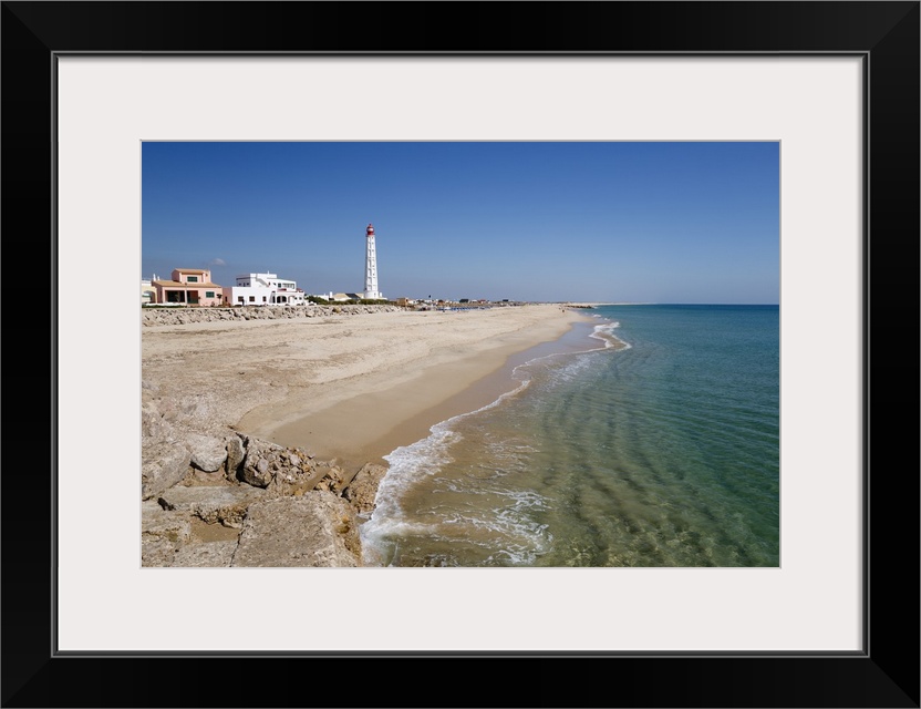 <p>Lighthouse and beach of Ilha do Farol, Culatra barrier island, Olhao, Algarve, Portugal</p>