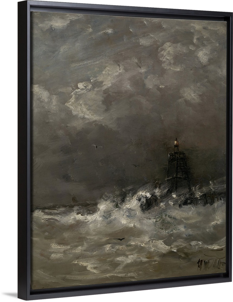 <p>Lighthouse in Breaking Waves, by Hendrik Willem Mesdag, c. 1900-07, Dutch painting, oil on panel. The lighthouse was installed in Scheveningen in the early 20th century.</p>