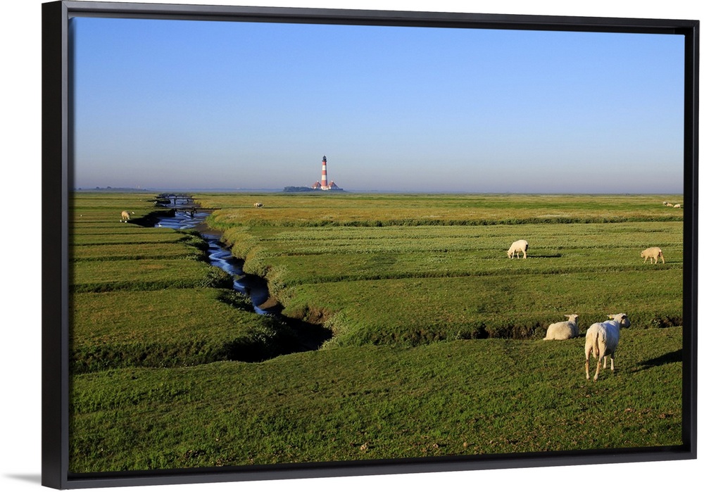 <p>Lighthouse in the Wadden Sea National Park, Westerhever, Schleswig-Holstein, Germany</p>