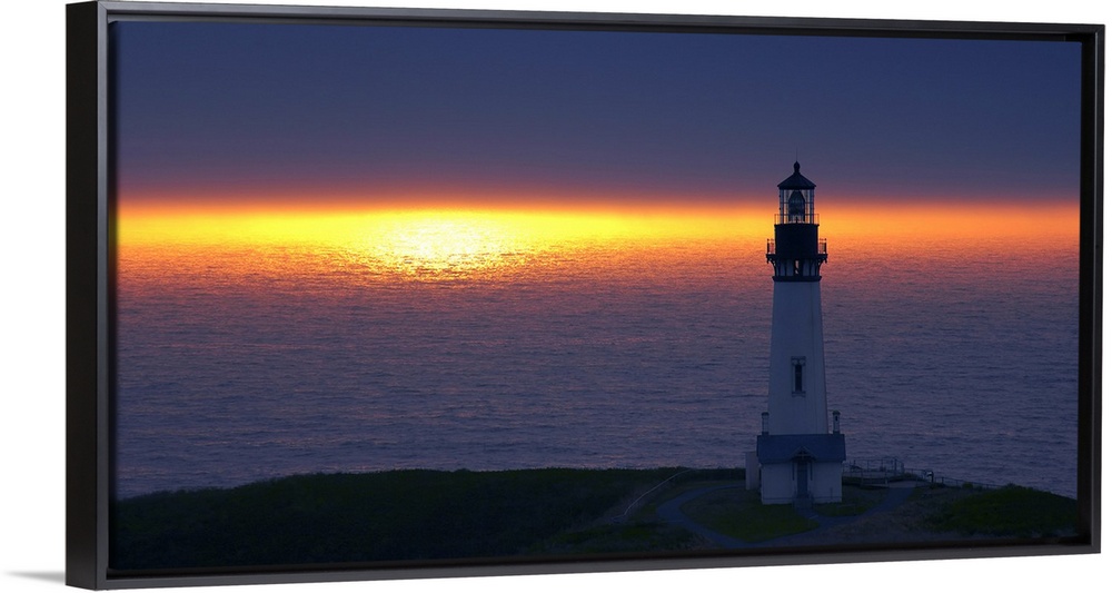 <p>Landscape photograph of an unlit lighthouse at sunset by the ocean.</p>