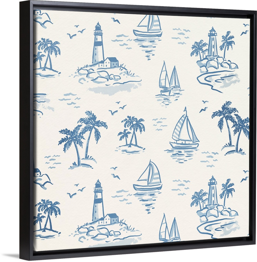 Art Coastal Victoria Barnes Blue Wall Art Decorative Art Graphic Art Lighthouse Seascapes Transportation Boat Sailboat