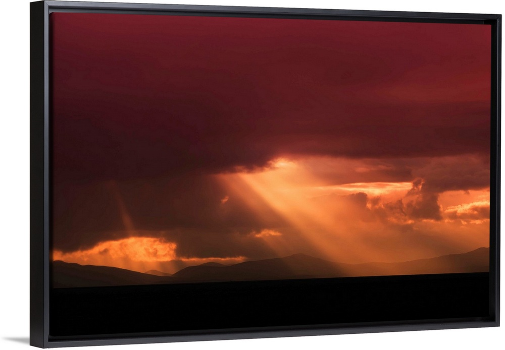 <p>Fine art photo of a bright beam of light shining through the clouds at sunset.</p>