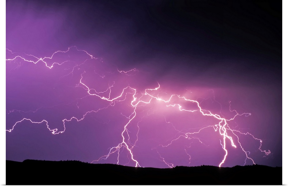 <p>Lightning in a purple sky during a storm in Yellowstone National Park, Wyoming, United States of America</p>