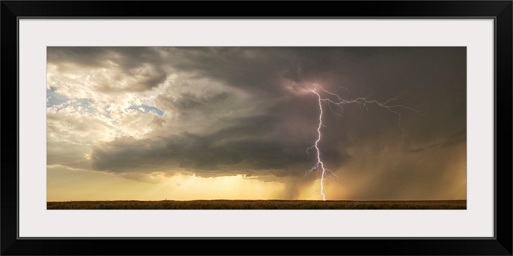 <p>Lightning strikes from a supercell thunderstorm over a wheat field in Nebraska.</p>