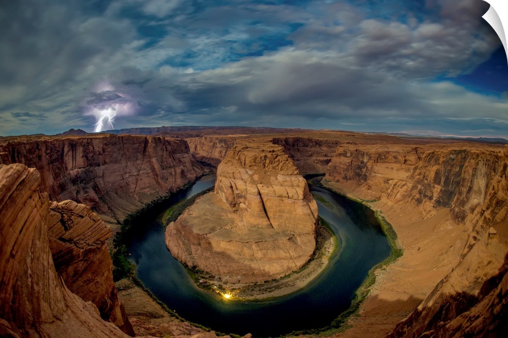 <p>Lightning strikes over the Horseshoe Bend of the Colorado River at night, Page, Arizona, United States of America</p>