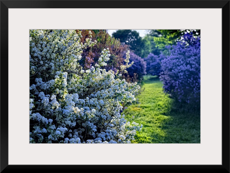 <p>Blooming Spirea and Lilac Shrubs in a Garden, Somerset County , New Jersy, USA</p>