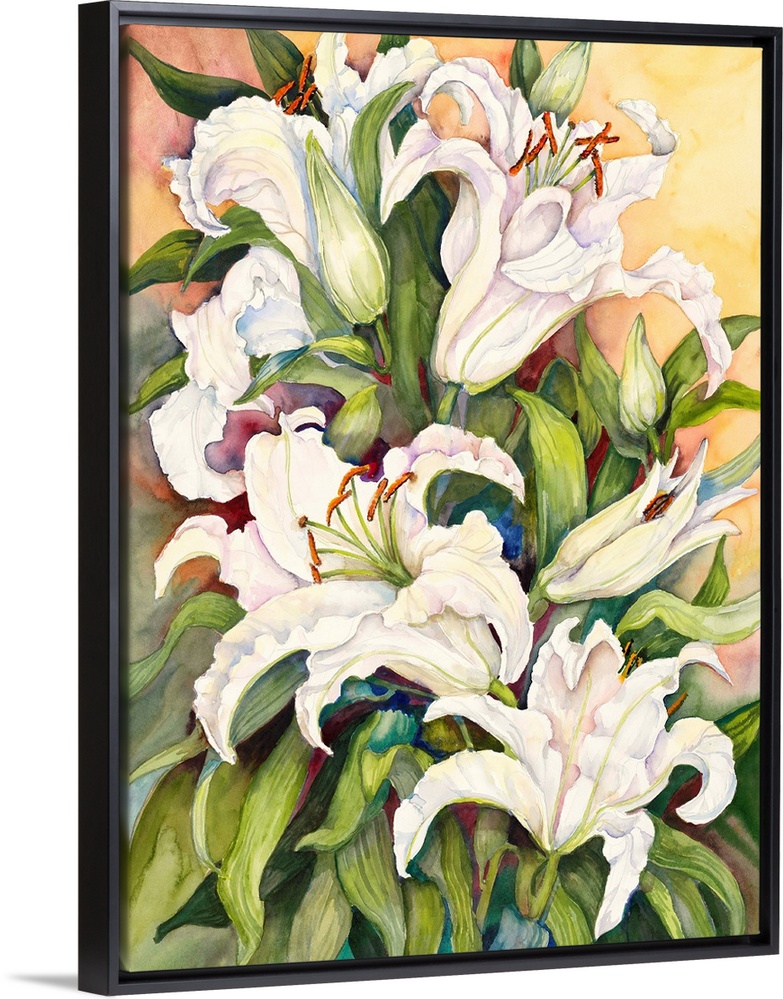 <p>Colorful contemporary painting of white lilies.</p>