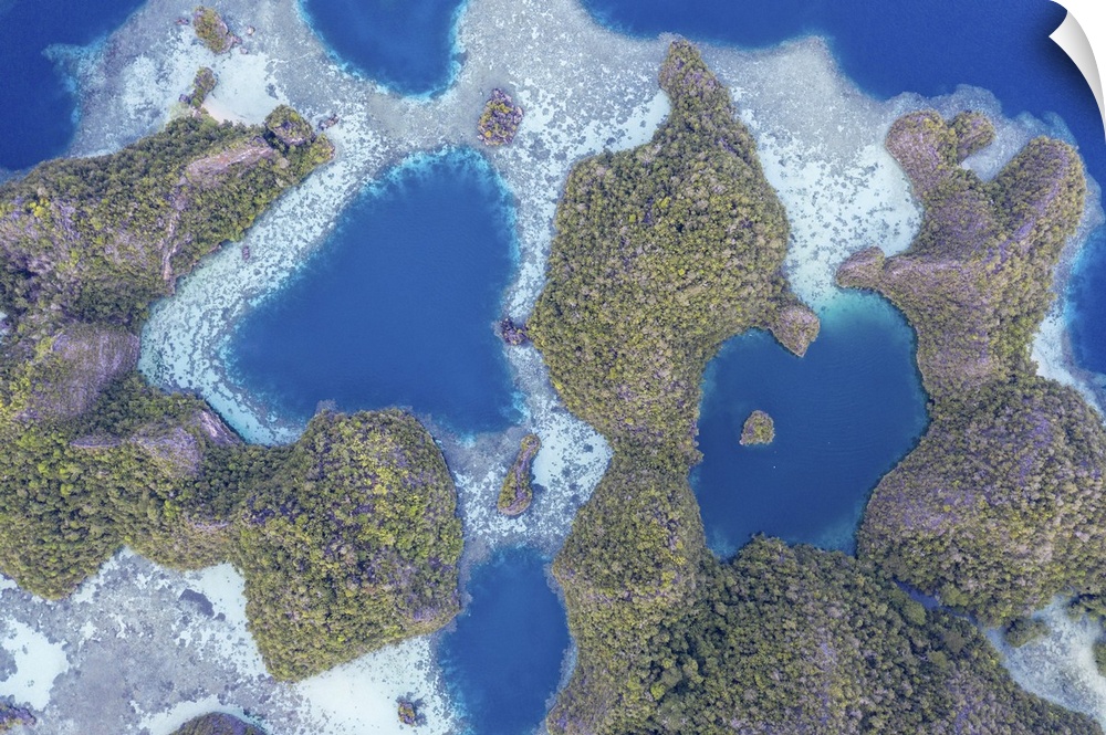 <p>Limestone islands rise from the beautiful seascape in Raja Ampat, Indonesia.</p>
